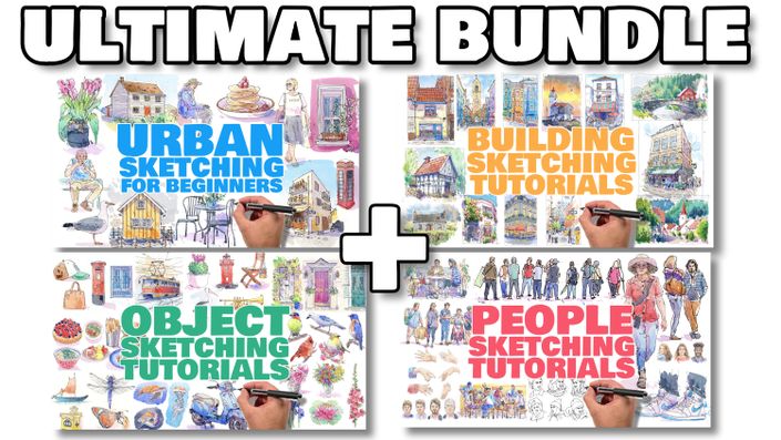 Start with my 'Urban Sketching for Beginners' course to build up your skills in urban sketching with topics including objects, buildings and people. Extend your skills with my 'Course Extension Tutorials'. Purchase the course and extension tutorials individually or in a bundle to save up to 15%!